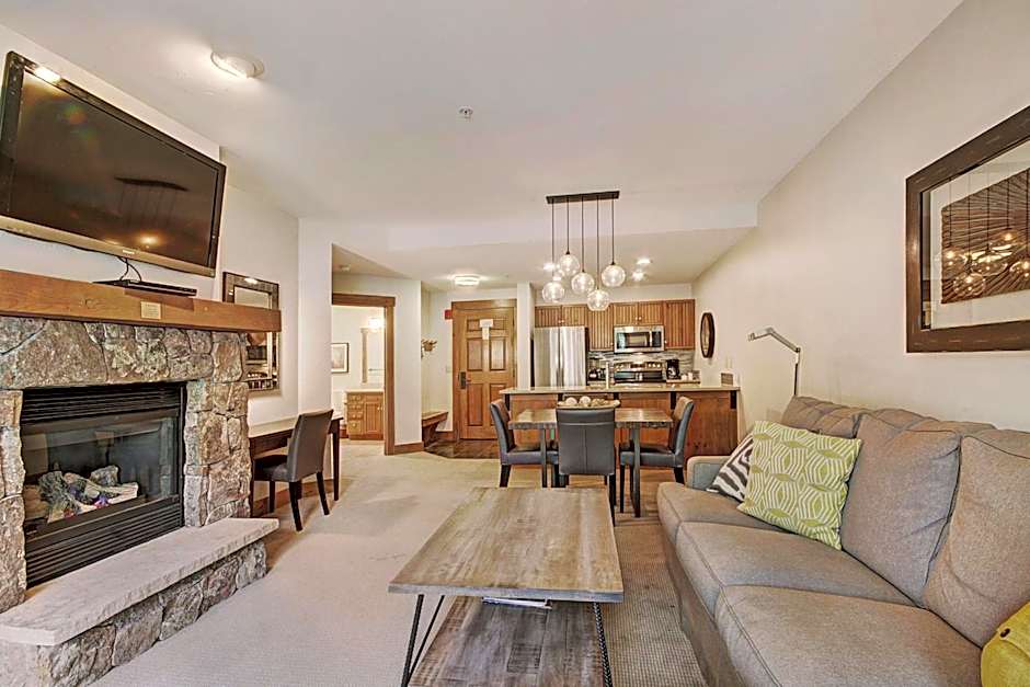 This apartment features a balcony, a kitchen with a dining area and a living room with a fireplace. A private bathroom is also offered.